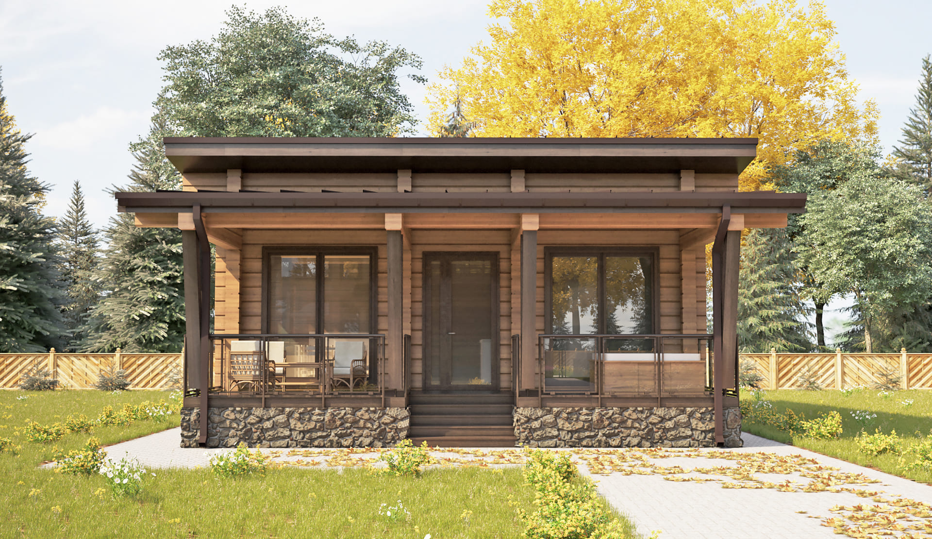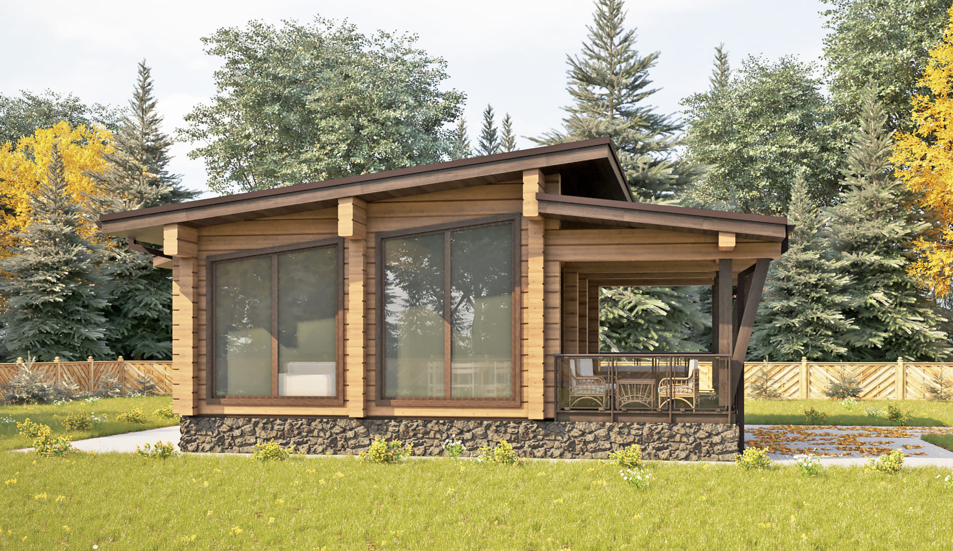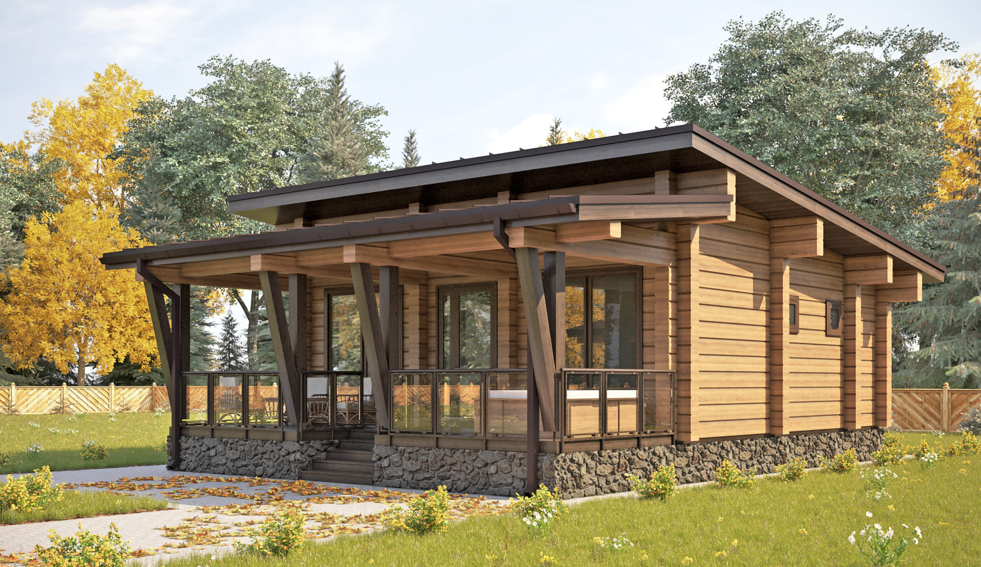 «Гринфилд» - Одноэтажная каркасная баня или гостевой дом. Готовый проект под ключ.