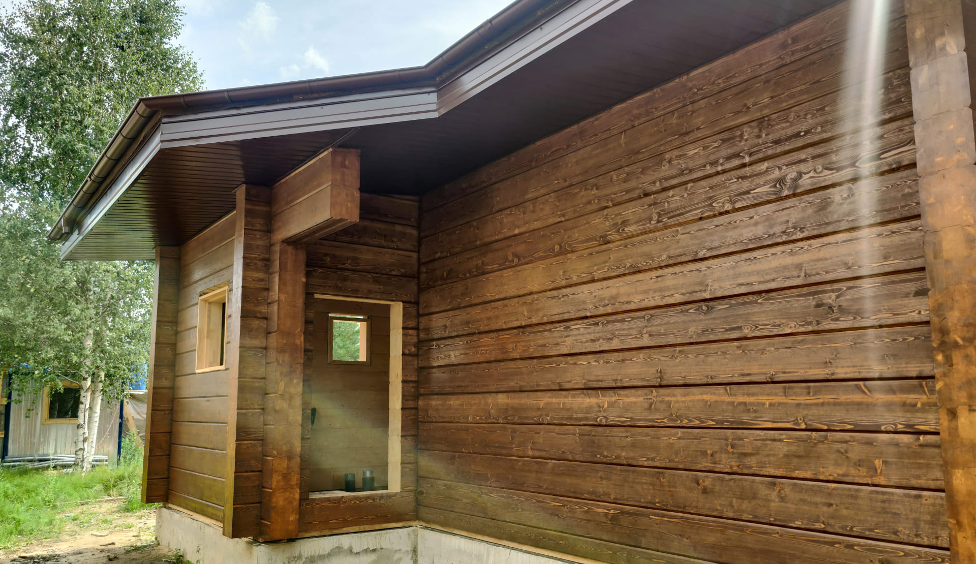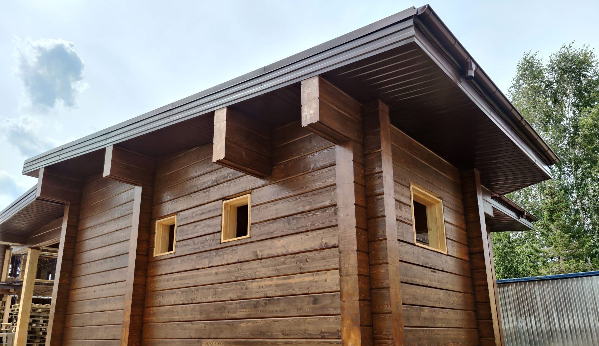 (цоколь, фасад, лобовые, доборные элементы, водосточная система, подшив, снегоудержание, откосы, отливы, наличники, крыльца, террасы)