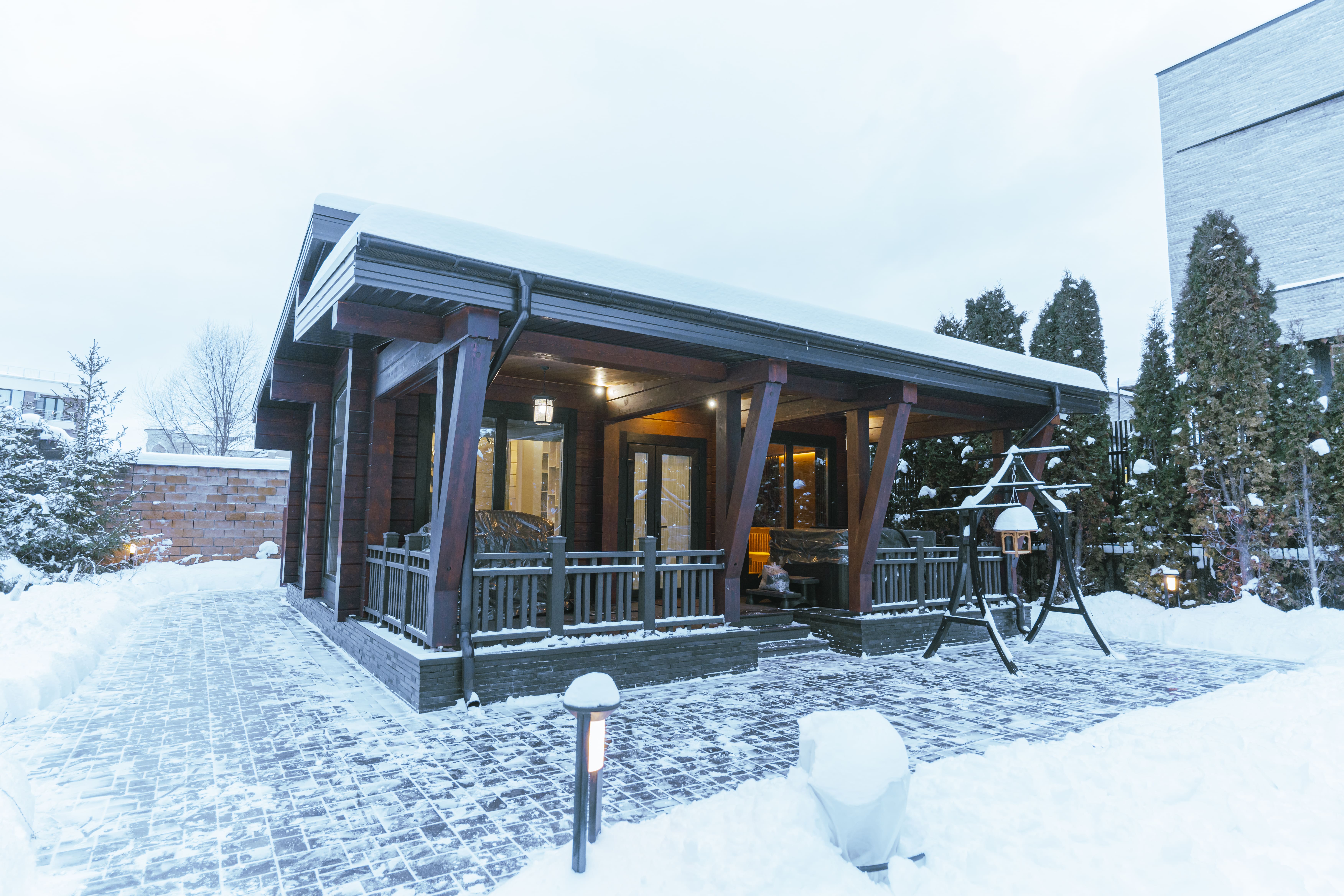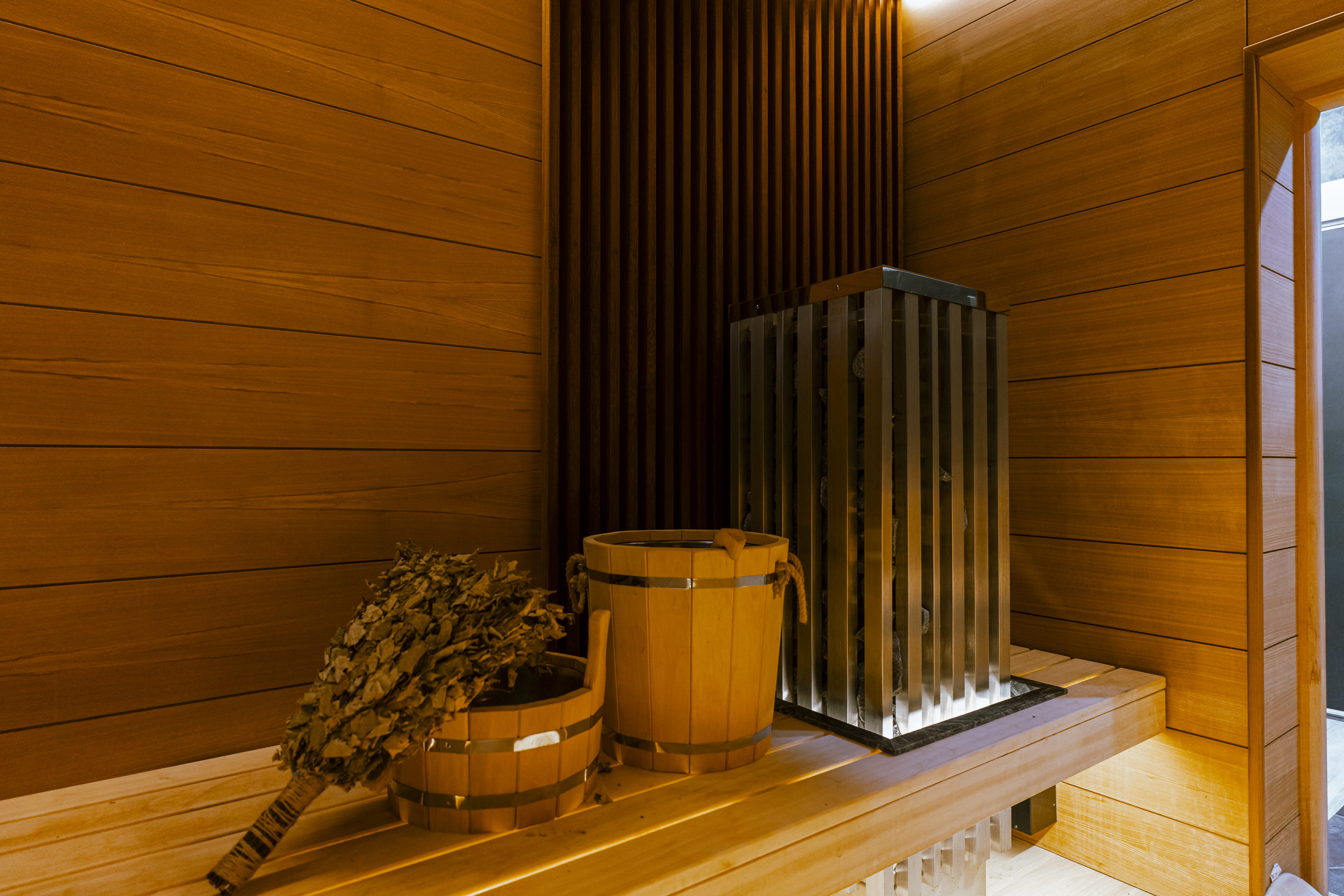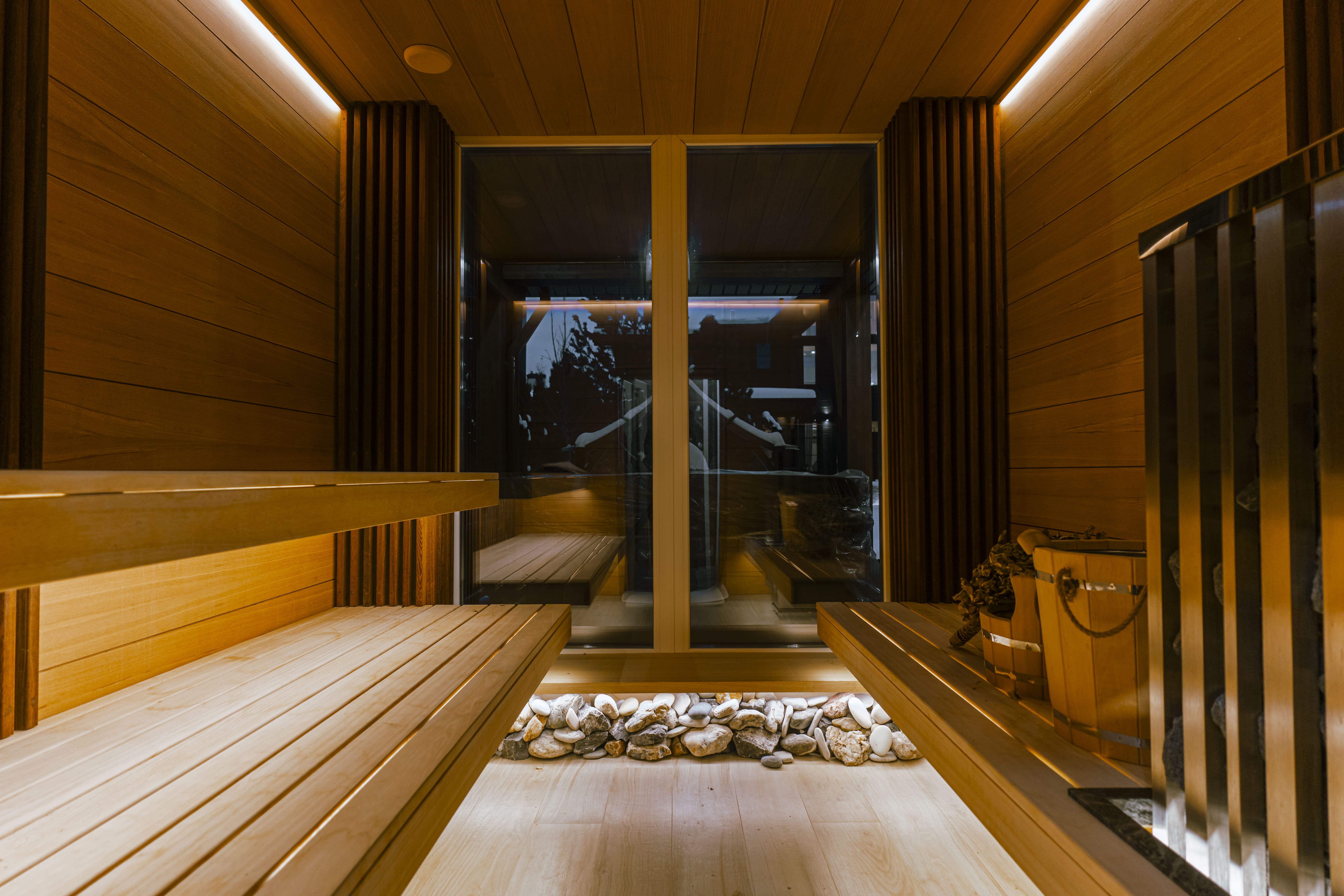 Парная с панорамным окном становится настоящим источником здоровья и бодрости. Сидя в парной, вы сможете любоваться природой ощущая заботливое тепло пара от дровяной печи, что делает процесс парения более приятным и расслабляющим. Каждый момент в парной — это не просто процедура, а настоящая церемония оздоровления и восстановления. В бане предусмотрена отдельная душевая зона, которая обеспечивает комфорт и удобство после сеансов в парной. Отдельный санузел добавляет функциональности, позволяя вам не беспокоиться о лишних перемещениях и наслаждаться отдыхом на полную катушку.