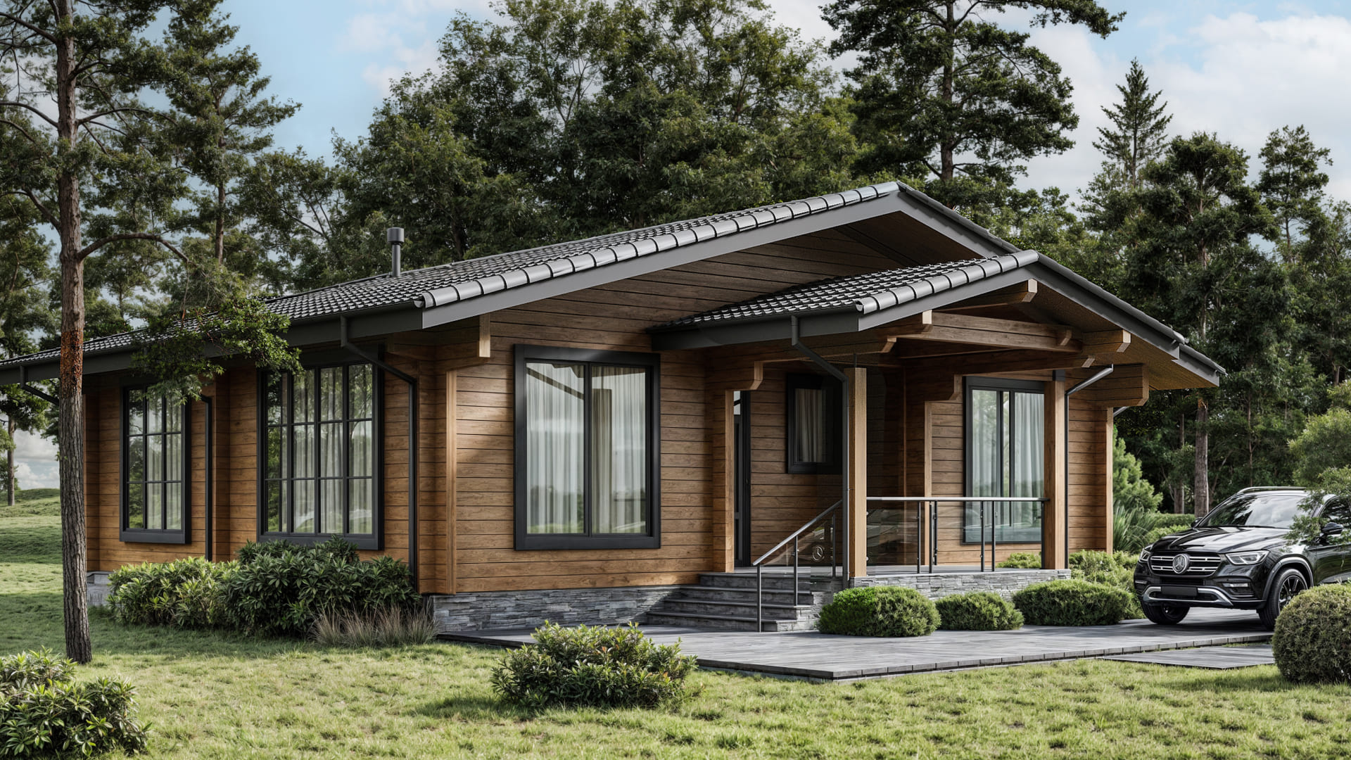 В целом, этот одноэтажный каркасный дом — это идеальное сочетание стиля, комфорта и практичности, создающее атмосферу домашнего уюта и спокойствия для всей семьи.